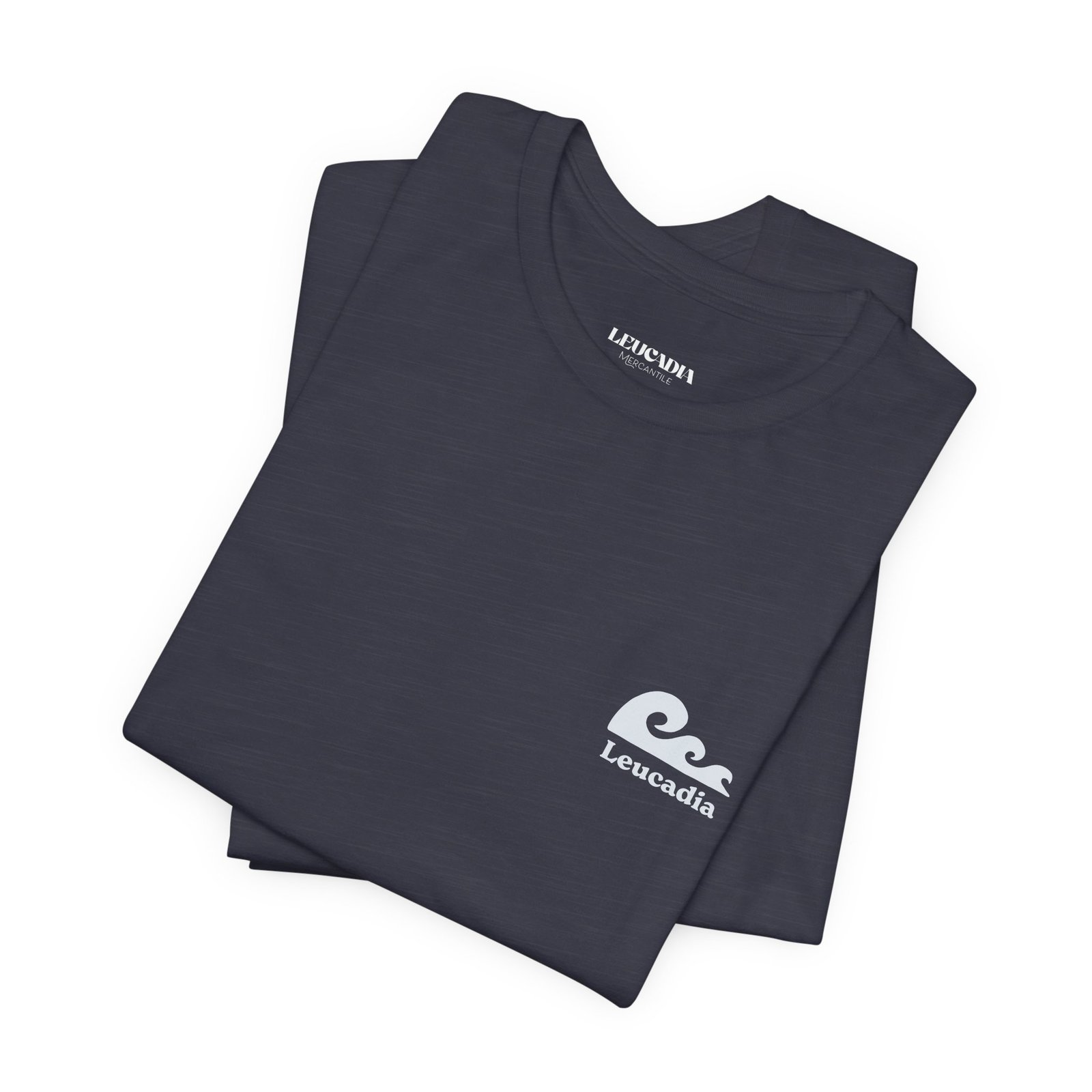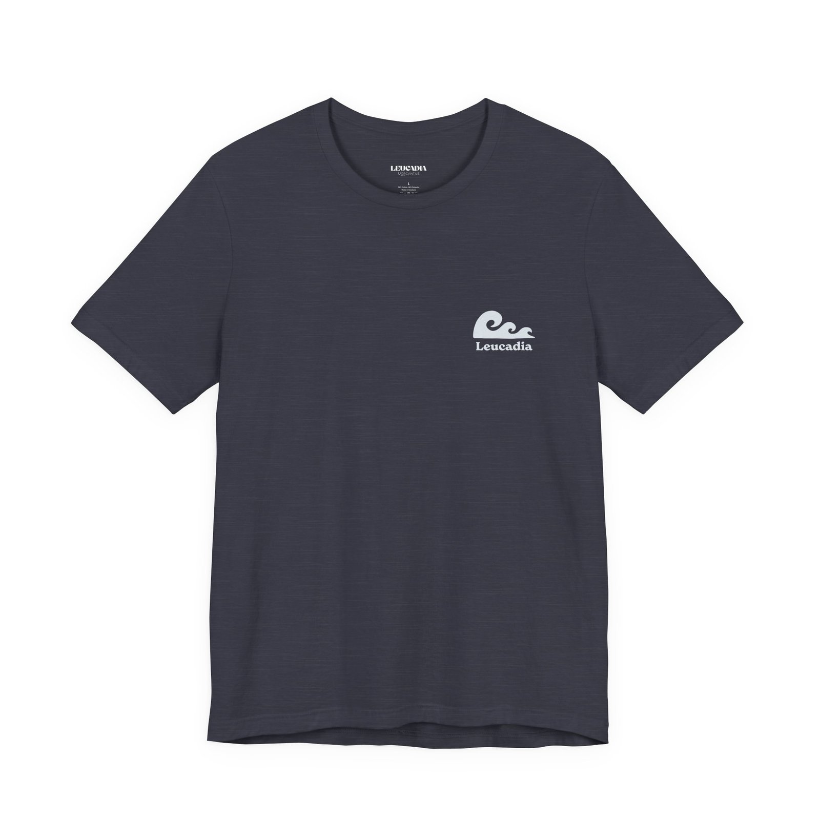 The Leucadia Wave tee features a wave logo on a lightweight heathered cotton tee. The kind of shirt you don’t think about — you just reach for it. Three colorways: Heather Storm, Heather Slate, and Heather Midnight Navy.